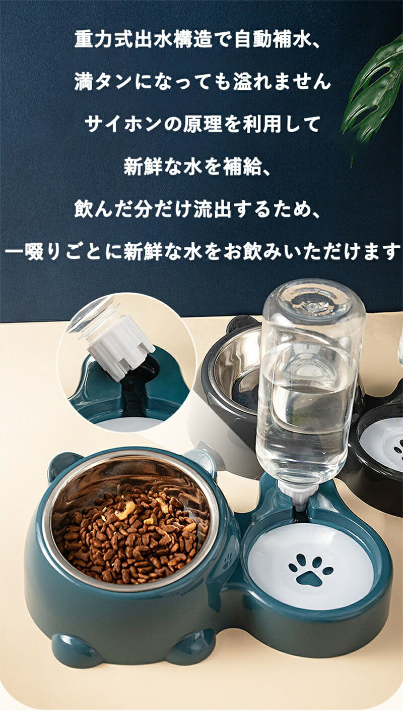 簡単な給餌と快適なデザイン:ペットがより健康的な姿勢で食事できるようサポートし、首の負担を軽減して快適性を高めます。 使いやすい設計:急速食べ防止機能により、ペットが早食いするのを防ぎ、喉詰まりのリスクを低減。健康的な消化を促進します。サイフォン原理を活用した自動給水システムで、常に安定した水位を維持。取り外し可能なボウルでお手入れも簡単です。 高い耐久性:大型犬にも対応したこのペット用ボウルは、高品質のプラスチック素材を使用。長期間の使用に耐える丈夫さで、愛ペットの健康を守りながら安全な食事環境を提供します。 便利な給水機能:ご主人が留守中でも安心!500mlの大容量ボトルが、2〜3日分の清潔な水を供給します。簡単に補充できる設計で、ペットの水分不足を防ぎます。 多様な活用シーン:猫と犬の両方に対応したこのフードセットは、ペットの食べる速度を効果的にコントロール。特殊な凹凸構造が、早食い防止に役立ち、嘔吐や肥満などの健康問題のリスクを軽減します。